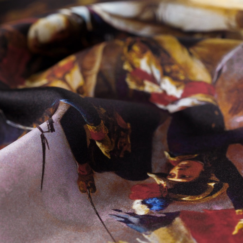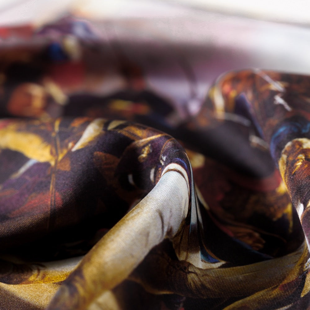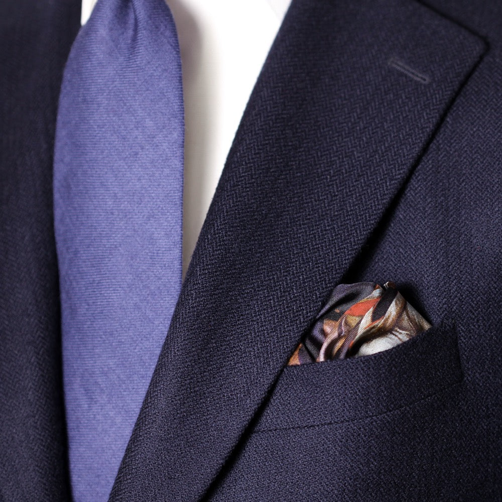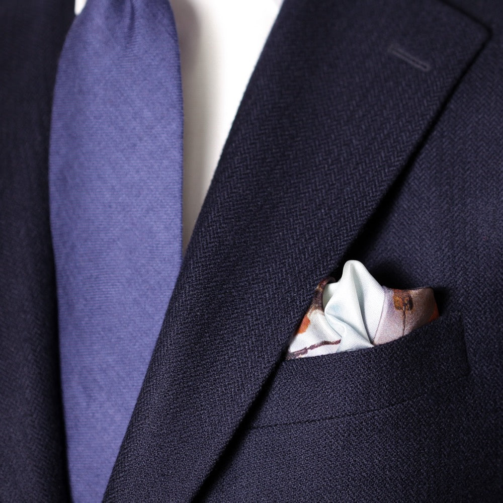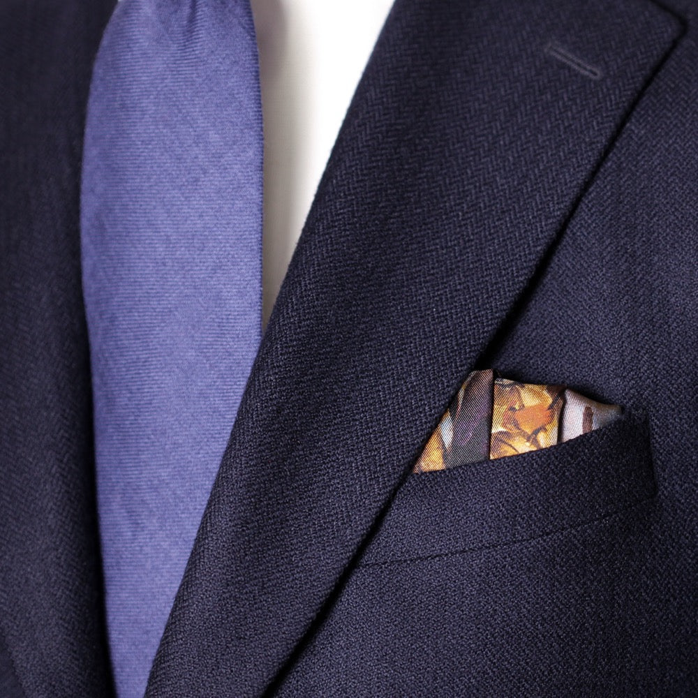 We use the finest mulberry silk with our silk and wool/silk pocket squares. The quality of the fabric can be seen in the texture and the level of detail and vibrancy of the finished product.