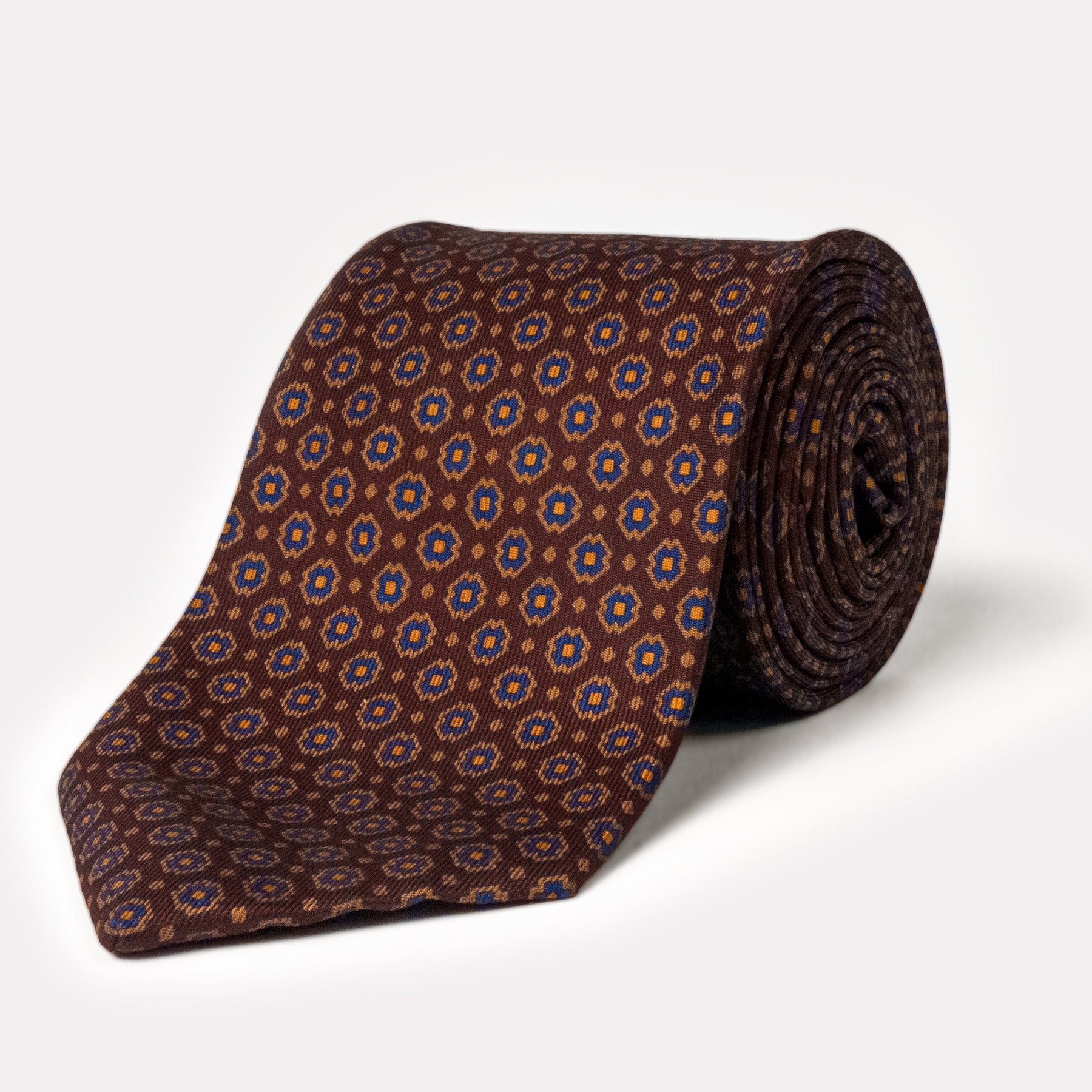 Burgundy, Bronze & Navy Repeat Madder Silk Tie: