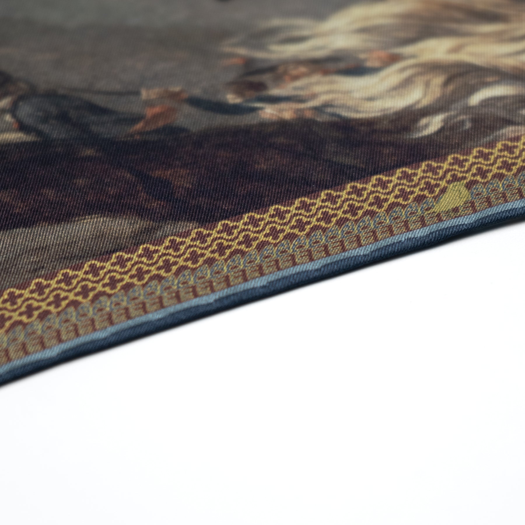 We use the finest mulberry silk with our silk and wool/silk pocket squares. The quality of the fabric can be seen in the texture and the level of detail and vibrancy of the finished product.