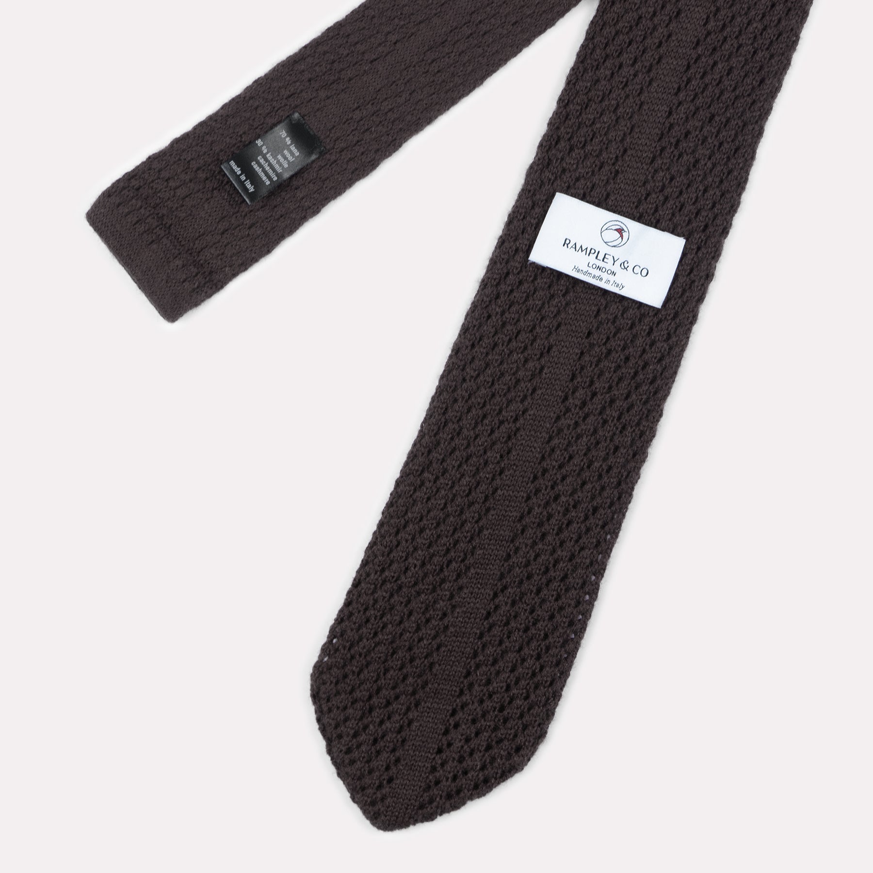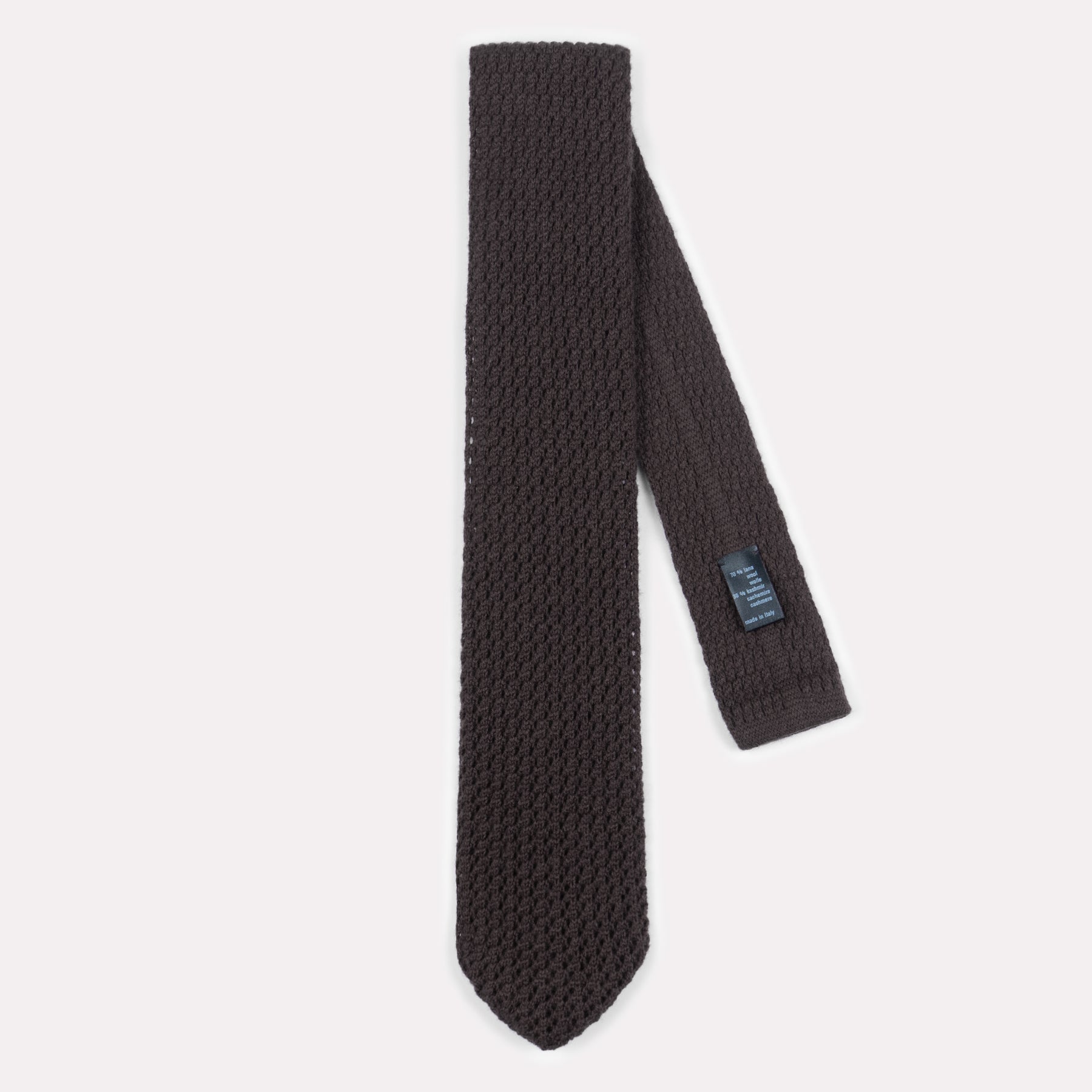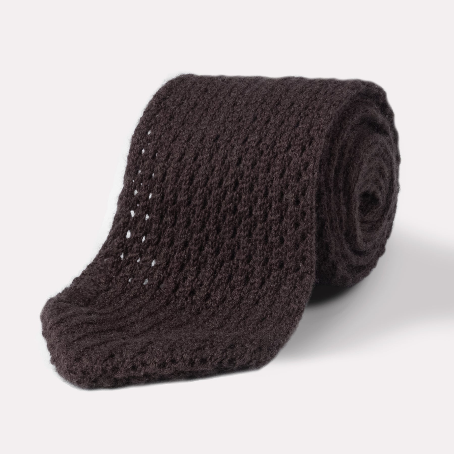 Dark Brown Knitted Wool-Cashmere Blend Tie
