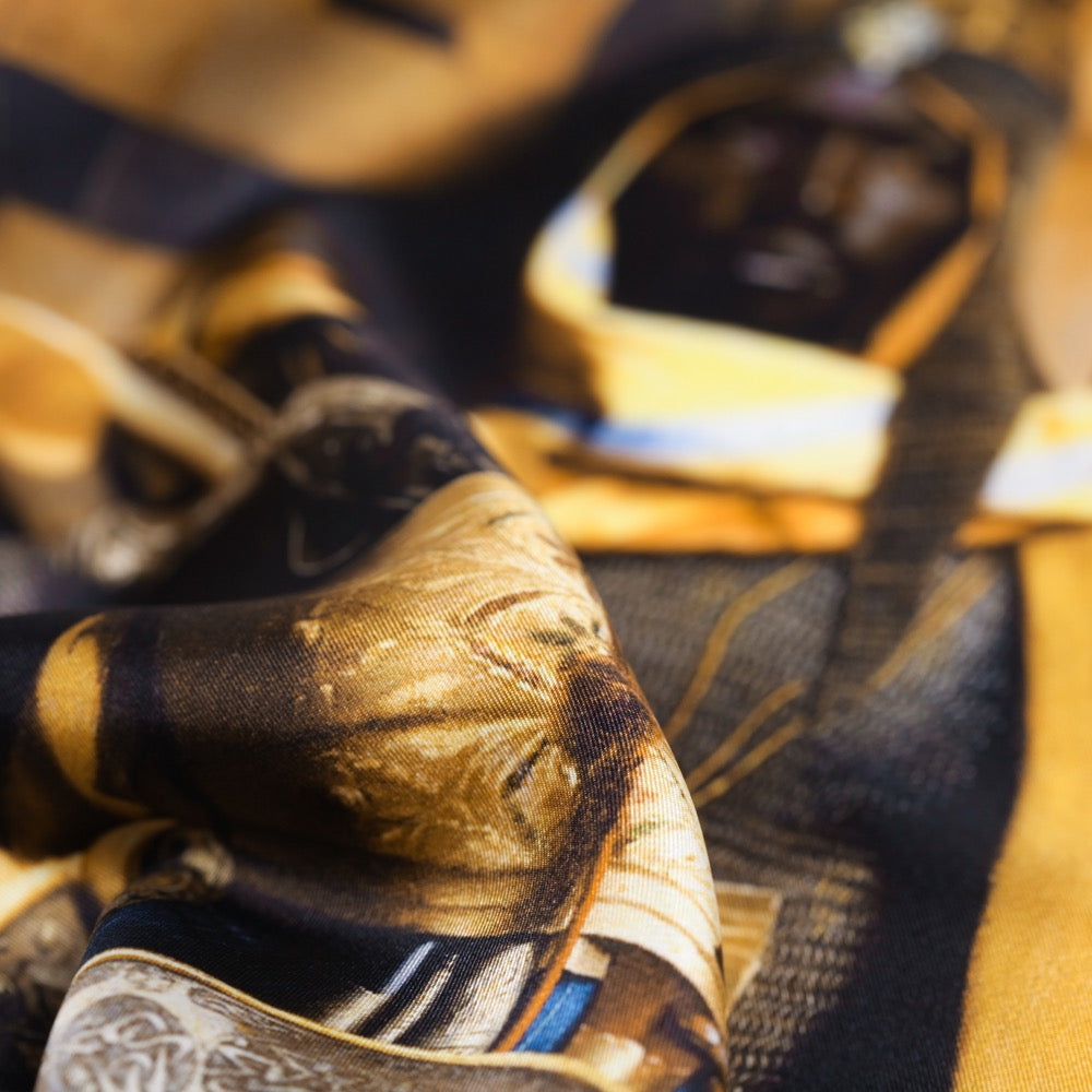 We use the finest mulberry silk with our silk and wool/silk pocket squares. The quality of the fabric can be seen in the texture and the level of detail and vibrancy of the finished product.