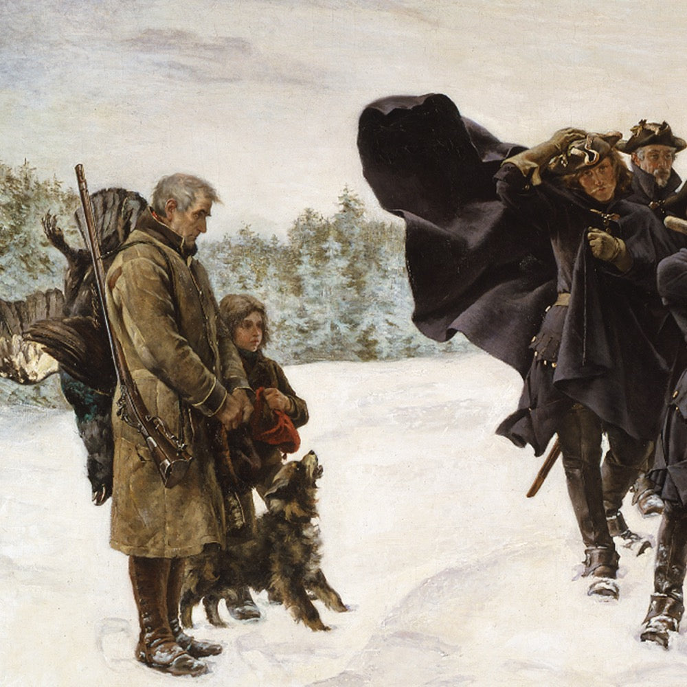 This lifelike painting from Gustaf Cederström portrays the royal hero's return to Sweden following a fatal shot at the Siege of Fredriksten in Norway in 1718. Cederström was so intent on capturing the image as realistically as possible that he enlisted professional models, colleagues, friends and relatives to pose for him to ensure each soldier had a definitive individual look. For the King himself, Cederström even erected a stretcher, getting a professional model to lie on it to create the scene as accurately as possible.