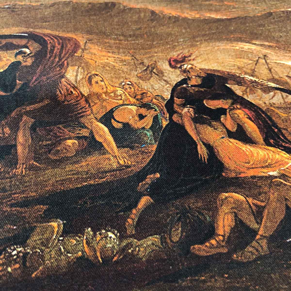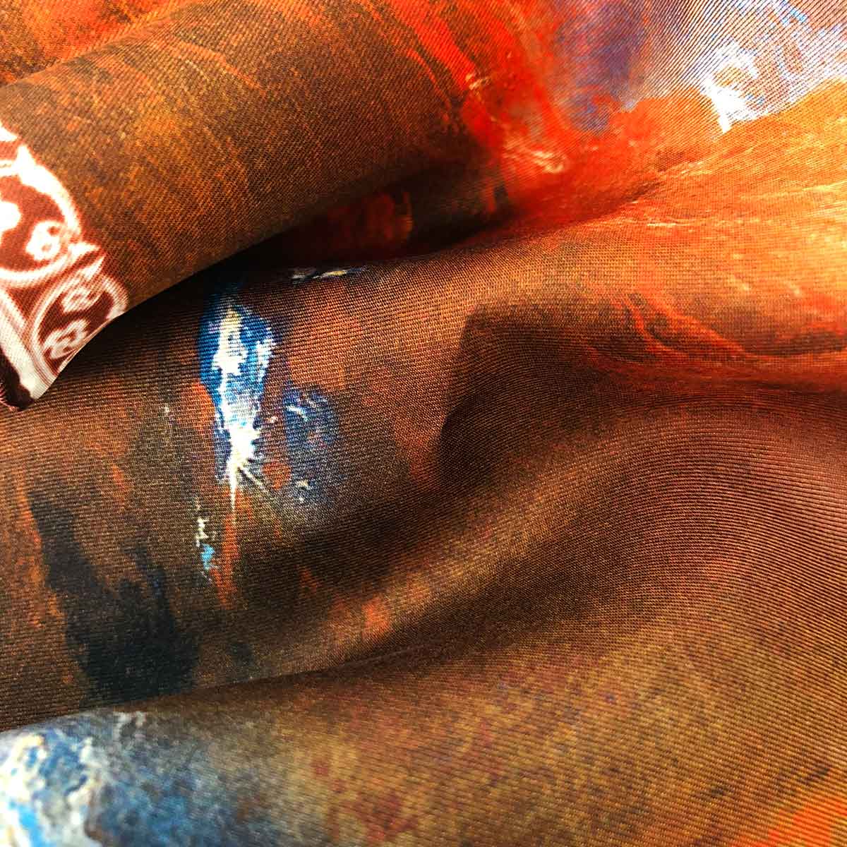On this pocket square, we’ve used John Martin’s oil painting of the destruction of the great cities of Pompeii and Herculaneum in 79 AD. This painting works brilliantly as a red pocket square with the contrast between dark and vibrant colours and means it really stands out, especially when paired with a darker jacket. We particularly like the flat fold and more flamboyant Dunaway and you can learn how to create those folds here on our guide on how to fold a pocket square