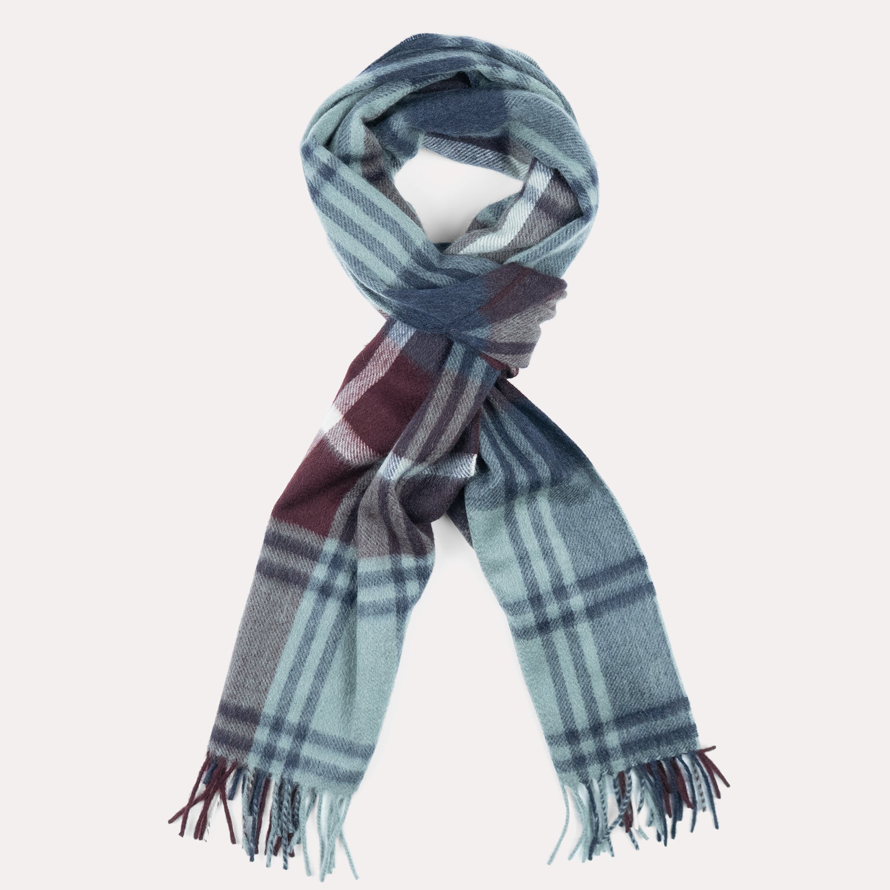 Burgundy & Slate Grey Tartan Cashmere Scarf