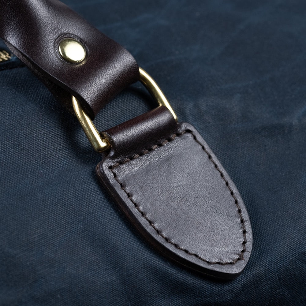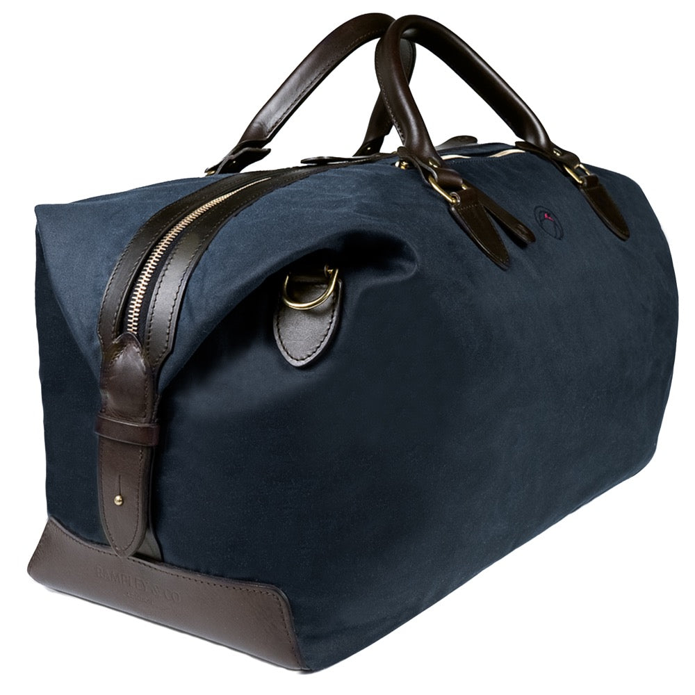 Our Navy Waxed Cotton Weekender is a timeless addition to your wardrobe that will last a lifetime. Handcrafted in England using the global leader of Waxed Cotton, and the finest Italian leather handles and trims, this weekender utilises the quintessential British outdoor fabric to create a truly stylish product. Perfect for both leisure and business travel, this weekender is guaranteed to get you noticed.