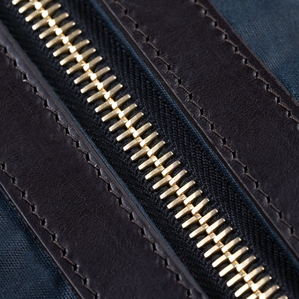 We chose Riri zips as they are considered to be the highest quality zips in the world, with enhanced durability and a buttery smooth operation. Our leather zip pullers feature debossed branding intentionally orientated for left and right, while the solid brass fittings beautifully complements the styling of the bag.