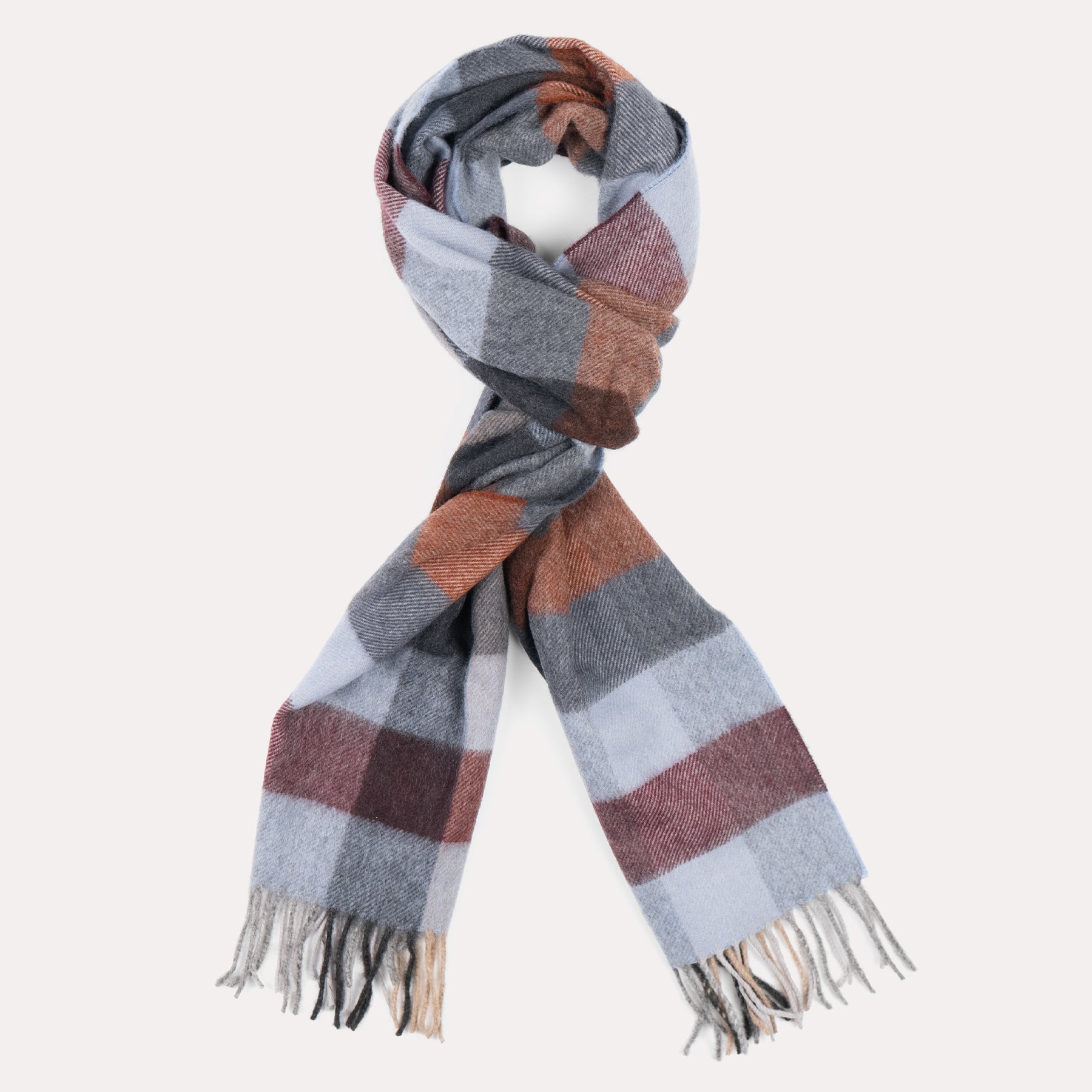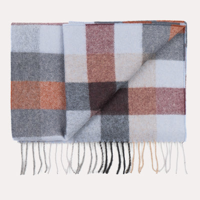 Rust & Slate Grey Check Cashmere Scarf